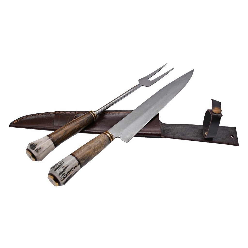 JUEGO DOBLE GRANDE ARTESANAL MADERA Y ANILLADO EN CIERVO